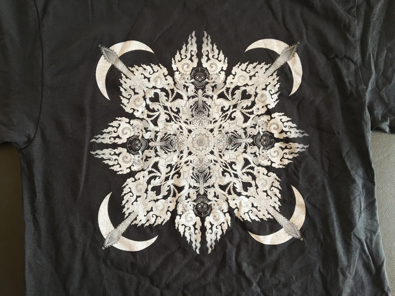 T-shirt featuring artwork from the new Echtra album, "BardO". Tantric image in grey on the front, Echtra logo in black on the back.