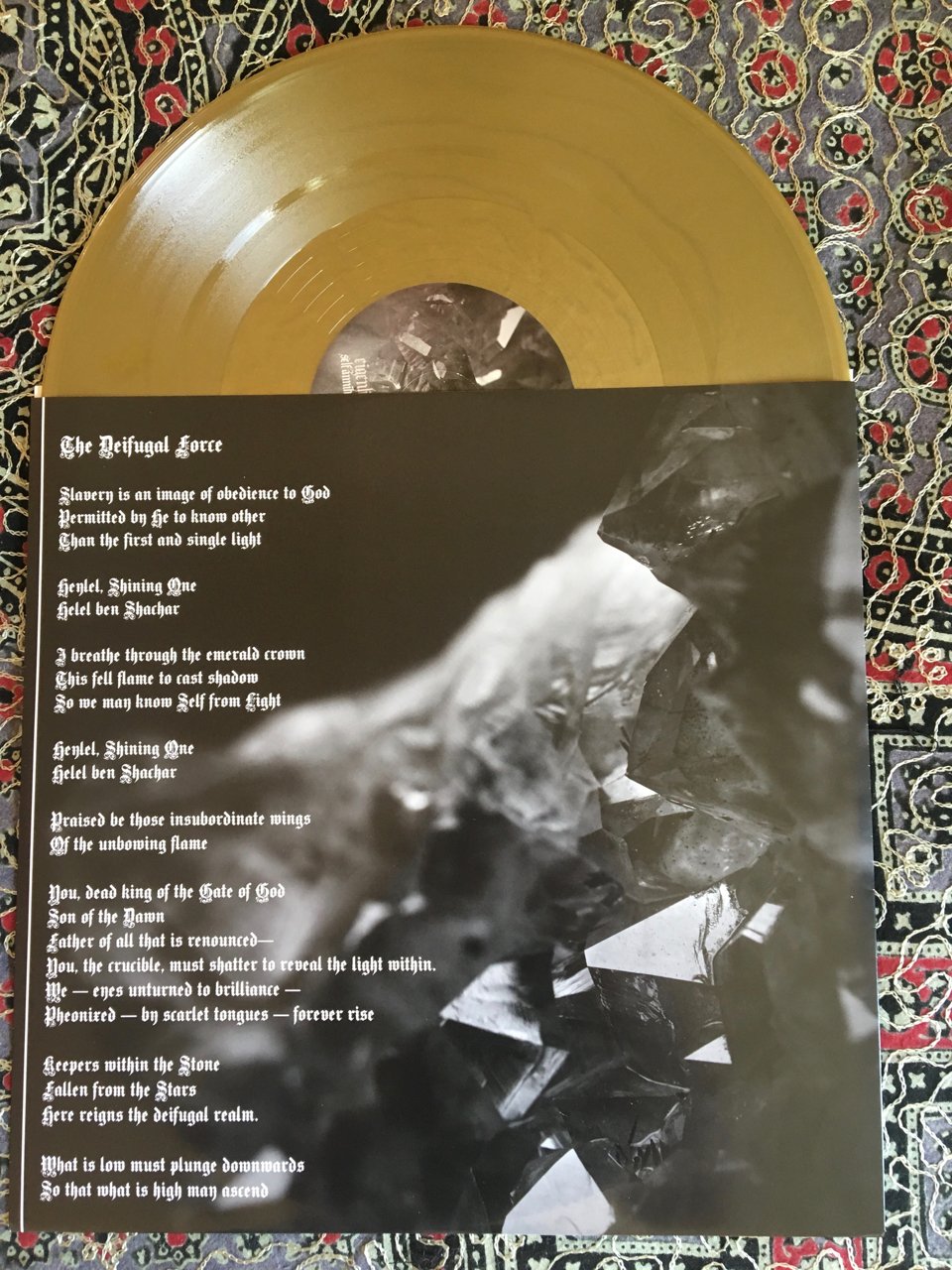 Presented in both black and gold vinyl, in a gatefold jacket with luxurious dark photography by Amjad Faur and gold foil stamping.